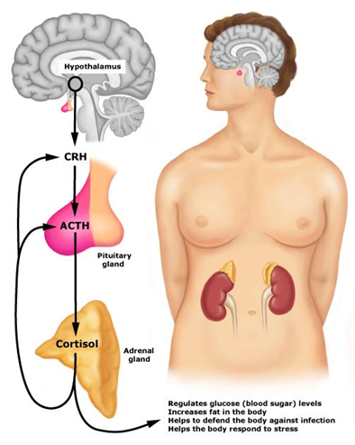 But with long-term physical or psychological stress, however, the outer portion of the adrenal glands releases another hormone called cortisol. Rat pups deprived of their mother even show significantly higher cortisol levels than pups that were not. Cortisol inhibits the secretion of growth hormone from the pituitary gland in the brain, which we attribute widely to the increasing height and bone mineralization as children develop into teens and adults. Interestingly, kids with Cushing’s syndrome(characterized by abnormally high levels of cortisol) also tend to have short stature and lower bone density compared to their healthy peers.
