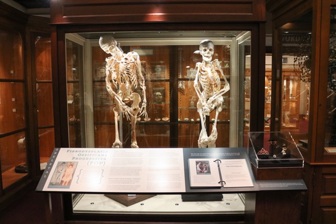 Until this point, I’ve mostly discussed museums displaying what could be considered archaeological or anthropological specimens – those of non-contemporary humans. The ethics of displaying unusual remains of individuals with medical anomalies enters into a greyer area. The main issue here seems to be one of consent: remains of this nature are frequently from individuals with living relatives or who were studied to some extent while they were living, rather than discovered long after death. Bodies or partial remains displayed in museums, such as the “Soap Lady” at the Mütter are sometimes unidentified or of indeterminate origin, rather than donated with explicit consent for display by the individual5. Other skeletons and body parts on display, such as the Mütter’s recently donated skeleton of a Philadelphia woman with Fibrodysplasia Ossificans Progressiva (FOP, a disorder where damaged tissue becomes ossified), were indeed donated with explicit consent for display and use as a tool of public education6. Then there is the matter of bodies donated by individuals who might be considered incapable of informed consent, such as individuals with impaired cognitive faculties, or fetal/infant remains. The exact nature of an individual’s consent to display should also be considered, as many members of the Mütter collection were acquired by Dr. Mutter for teaching purposes and later donated to the Philadelphia College of Physicians to create a museum5. Thus, even individuals who may have consented to being utilized for teaching purposes may not have wished to be on public display to thousands of visitors every year.