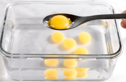 Creating a juice sphere, or juice caviar (Figure 1), requires relatively few ingredients, though the time required is much longer. Food scientists and chefs use clever tricks involving vacuum pressure to skip the lengthy ‘setting’ times in the spherification process. The juice sphere has a gel layer surrounding it, similar to caviar, with a liquid center that results in a ‘pop’ of flavor once the gel layer is broken. Preparing a juice sphere requires a liquid of choice, sodium alginate, and calcium gluconate. Alginate is a polysaccharide, a carbohydrate made of multiple simple sugar chains, that can be extracted from seaweed. Different species of seaweed produce alginate of various lengths and strengths, with some capable of forming gels that resist nearly 300 times their weight3. The sodium alginate used in the spherification process cannot form a gel on its own and must react with another compound to polymerize. Polymerization is the process in which simple molecules chemically bond to form a larger, more complex structure. In this instance, the alginate starts as smaller carbohydrate chains but polymerizes to form a larger mesh-like structure. The addition of calcium gluconate to the solution leads to the replacement of sodium ions with calcium ions, leading to the polymerization of the alginate to create a gel5. In the juice sphere recipe, the juice is mixed with calcium gluconate before interaction with a water-sodium alginate bath. To achieve the sphere shape, a rounded teaspoon or tablespoon can be used to transfer the juice with calcium gluconate into the sodium alginate bath (Figure 1). Once the two reagents are introduced, the polymerization process begins, forming a thin gel layer around the juice sphere. Incubation time matters, as a short interaction period, will result in a thin gel layer that snaps similar to caviar, while prolonged incubation can lead to a jelly-like bead. Gastronomists have advanced spherification beyond juices, with some even using oyster soup4.