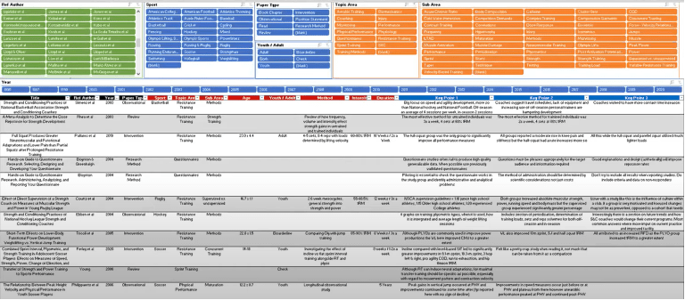 I found out about the extremely useful Excel paper organization template from a 5th year neuroscience PhD student at Penn State College of Medicine, Angela Snyder (@aesnyder14). Angela retweeted Stephen McQuilliam’s, a PhD student at Liverpool John Moores University (@SteMcQuilliam), tweet where he shared a helpful video on how to create the Excel journal database. The remarkable thing about his Excel journal database is that it is very organized, and you can use your citation managers to import the information directly into the Excel (fig. 1). The video explains all the steps very clearly and it only takes about 5 minutes to create. The advantage of using this along with the citation managers is that it allows you to add more details on the key points of the paper, the methods, the results, etc.