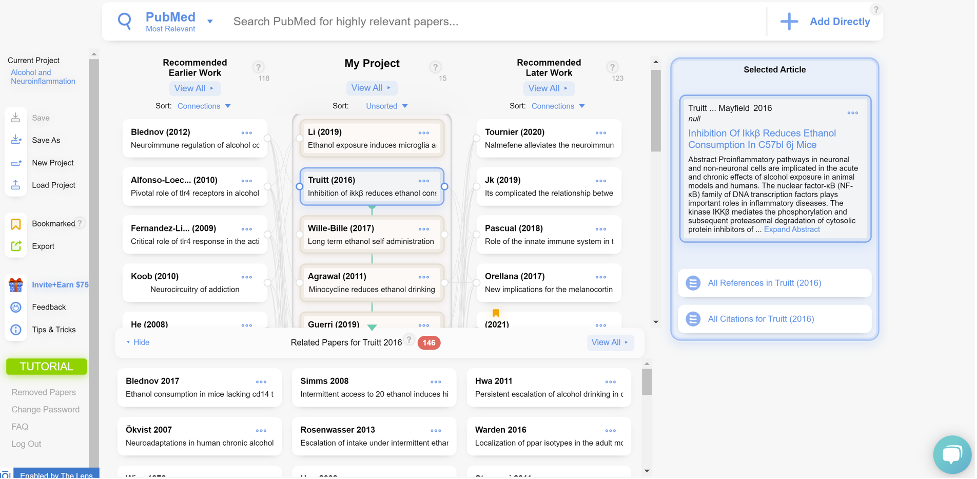 Last but not least, I recently discovered ResearchRabbit on academic Twitter. Research Rabbit is a database that allows you to create different projects and add papers related to your current project. After adding 2 or more papers, the database will work to find other papers related to your project and other papers related to each specific article (fig 3). You can also directly add papers from PubMed and other databases. I love using ResearchRabbit, because the database helps me see what the newest and most relevant papers are to my project. One aspect of ResearchRabbit that really sets their application apart is that the creators of ResearchRabbit are easily accessible through email and Twitter (@RsrchRabbit) and are very responsive to the needs of their users.
