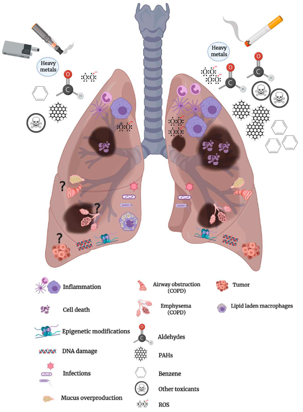 - Chand HS, Muthumalage T, Maziak W, Rahman I. Pulmonary toxicity and the pathophysiology of electronic cigarette, or vaping product, use associated lung injury. Frontiers in pharmacology. 2020 Jan 14; 10:1619.