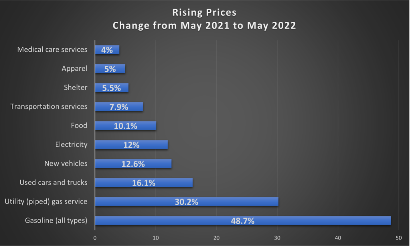 Of course, 9.1% inflation does not mean that all goods and services are 9.1% more expensive across the board. Depending on your needs, the cost increases might be more or less noticeable, but it is easy to see from the CPI report that many essentials have increased dramatically over the past year (Figure 1).