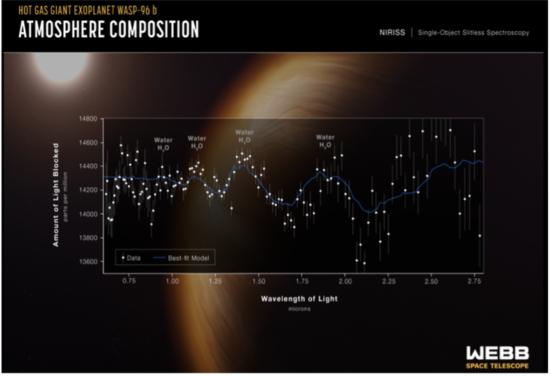 - WEBB Space Telescope. (n.d.). Exoplanet WASP-96 b (NIRISS Transmission Spectrum). WebbTelescope.org. Retrieved August 2, 2022, from https://webbtelescope.org/contents/media/images/2022/032/01G72VSFW756JW5SXWV1HYMQK4?page=2&filterUUID=91dfa083-c258-4f9f-bef1-8f40c26f4c97