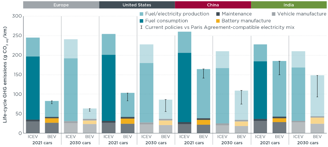 12. Bieker, G. A global comparison of the life-cycle greenhouse gas emissions of combustion engine and electric passenger cars. International Council on Clean Transportation https://theicct.org/publication/a-global-comparison-of-the-life-cycle-greenhouse-gas-emissions-of-combustion-engine-and-electric-passenger-cars/ (2021).