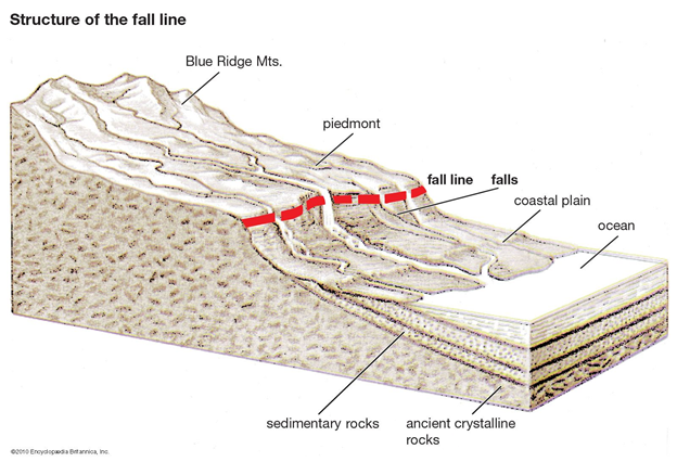 - There’s a geologic boundary called the Atlantic Fall Line that extends from NJ to AL, and causes rapids in rivers.