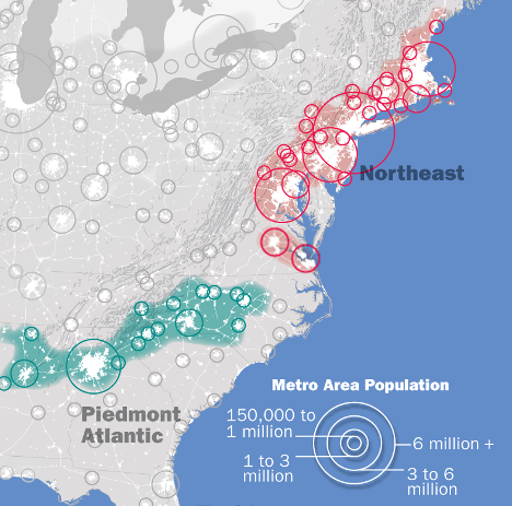 Many major cities in the Northeastern region of the United States, such as New York City and Boston, are ports, and as such are situated directly on the coast. However, as you look farther south, the major metro areas move inland, straying away from the shores of the Atlantic Ocean (Figure 1).