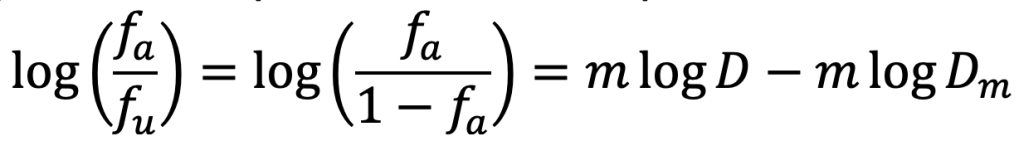 where fa and fu are the cell fractions of the system affected and unaffected by the dose level D. Dm is the dose level corresponding to the median effect, e.g., IC50 (half maximal inhibitory concentration), ED50 (half-maximum effective dose), or LD50 (median lethal dose) values. m, also called the Hill coefficient, is the sigmoidicity of the median-effect curve.