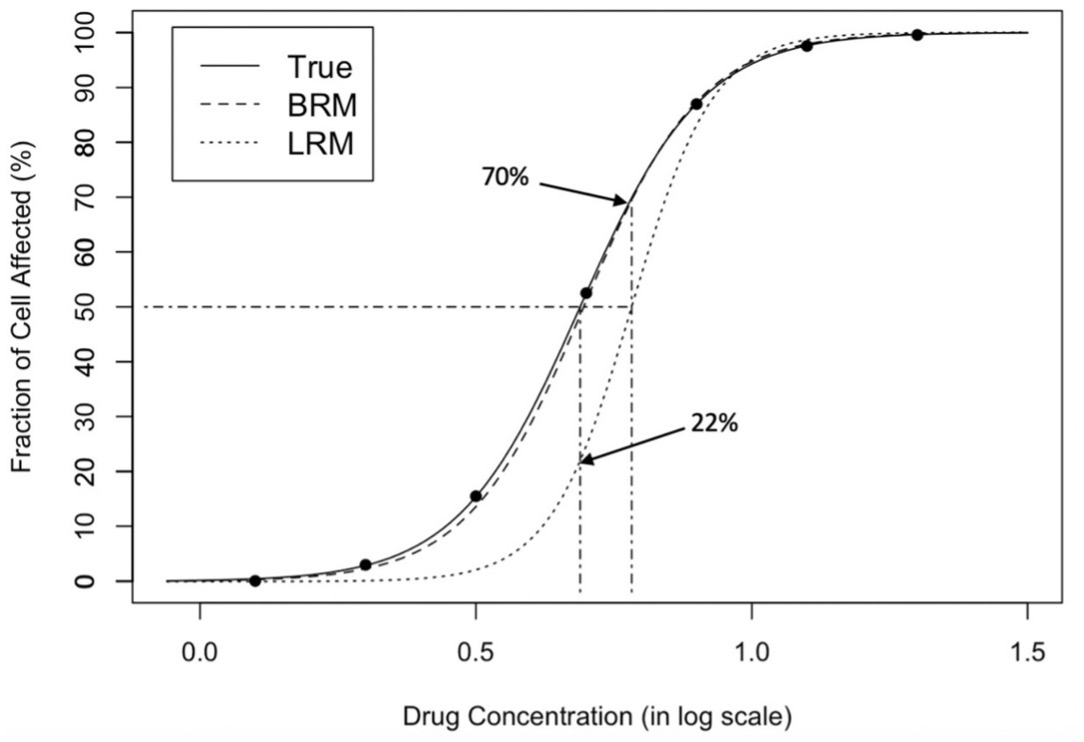 To tackle the challenge, we developed a novel method called Robust and Efficient Assessment of Potency (REAP) for estimating dose-response relationships3. REAP is a statistical approach based on a robust beta regression. Compared to the standard linear regression which measures a straight-line relationship for continuous data, beta regression allows more flexibility and fits To tackle the challenge, we developed a novel method called Robust and Efficient Assessment of Potency (REAP) for estimating dose-response relationships3. REAP is a statistical approach based on a robust beta regression. Compared to the standard linear regression which measures a straight-line relationship for continuous data, beta regression allows more flexibility and fits better when dealing with data that are in the 0 to 1 range, like proportions or percentages. To ensure the reliability of REAP, we conducted several simulation studies comparing REAP with the conventional linear regression estimation method.