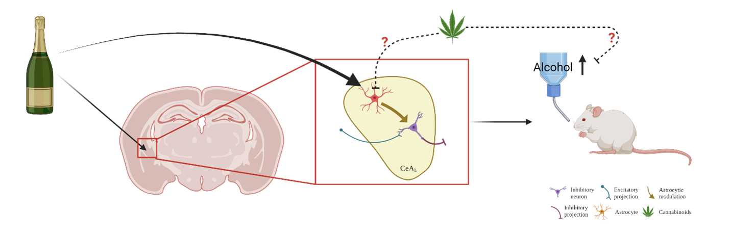 - I wanted to test whether modulating central amygdala astrocytes would lead to changes in alcohol drinking behavior in mice.