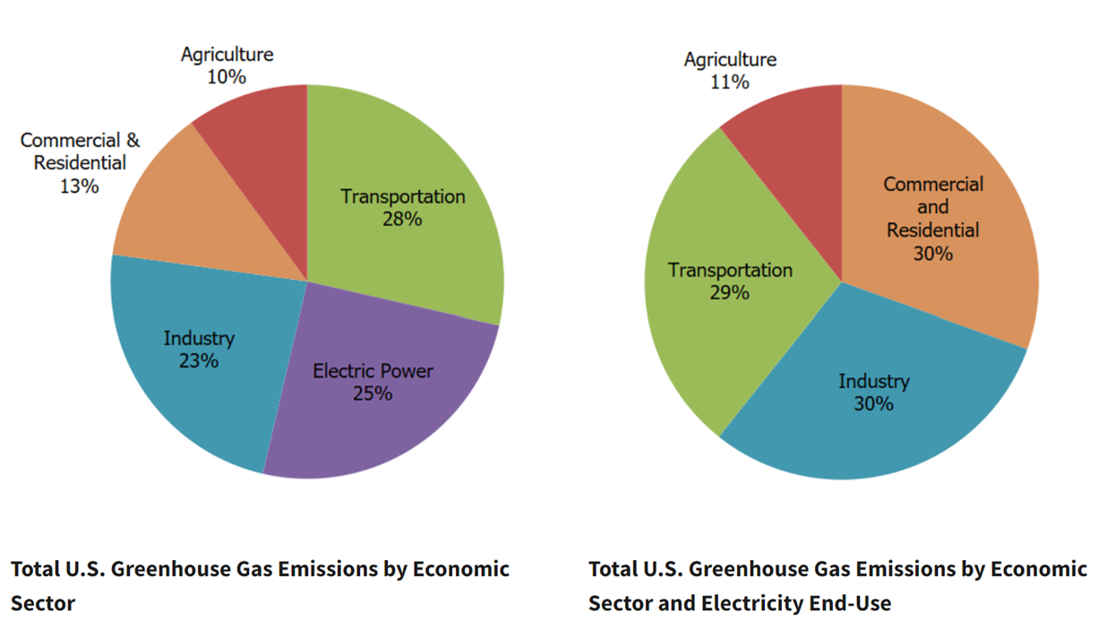 Environmental conservation and climate change are polarizing topics, especially in the United States. Strong adherence to partisan beliefs, psychological distancing, and cognitive dissonance about lifestyle change may lead to climate change denial, even with scientific consensus verifying the current environmental crisis. Conversely, many individuals have become paralyzed with ecoanxiety due to feelings that Earth’s demise is inevitable. Fierce debates on individual vs. corporate responsibility are ongoing with no end in sight, further increasing confusion and perceived powerlessness in many individuals. In fact, fossil fuel companies like ExxonMobil have faced lawsuits over deceiving investors and consumers regarding the extent of corporate contributions to climate change risks. In 2021, residential energy use accounted for only 9.1% of US carbon emissions. While it is true that these numbers pale in comparison to the industrial sector, this doesn’t mean that individuals and households play no role in climate change and its mitigation. When factoring in the use of electricity, the greenhouse gas burden of the commercial and residential sector in 2021 rises from 13% to 30%, equal to that of the industrial sector (Figure 2). However, the industrial sector consists of fewer entities, each producing significantly greater emissions than individual households.