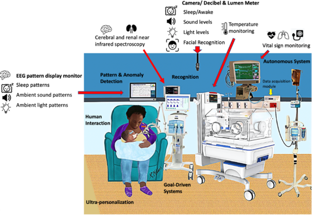 - The neonatal intensive care unit (NICU) collects large amounts of data that can be used for AI-based monitoring and assessment of potential symptoms.