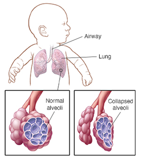 Most babies born before 29 weeks of gestational age are affected by respiratory distress syndrome (RDS), a serious condition that makes it difficult for babies to breathe7. RDS is caused by insufficient levels of surfactant, a lipid-protein substance produced by type II pneumocytes in the alveoli (tiny air sacs) of the lungs. Surfactant is essential for lowering the surface tension in the lungs by allowing the alveoli to remain open for oxygen and carbon dioxide exchange. In the absence of adequate levels of surfactant, the alveoli no longer expand with each breath, preventing proper oxygenation and resulting in lung collapse12 (Figure 2). Currently, lung ultrasounds are used to monitor lung health and assess the risk of RDS and other lung complications. A group from the University of Federico II in Naples, Italy reported that an AI-based analysis of 600 lung ultrasounds from infants with varying degrees of respiratory underdevelopment successfully quantified levels of air circulation and degrees of respiratory distress13.