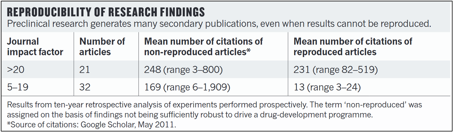 Table 1. The number of times a peer-reviewed paper was cited was not affected by its impact factor or reproducibility status.2